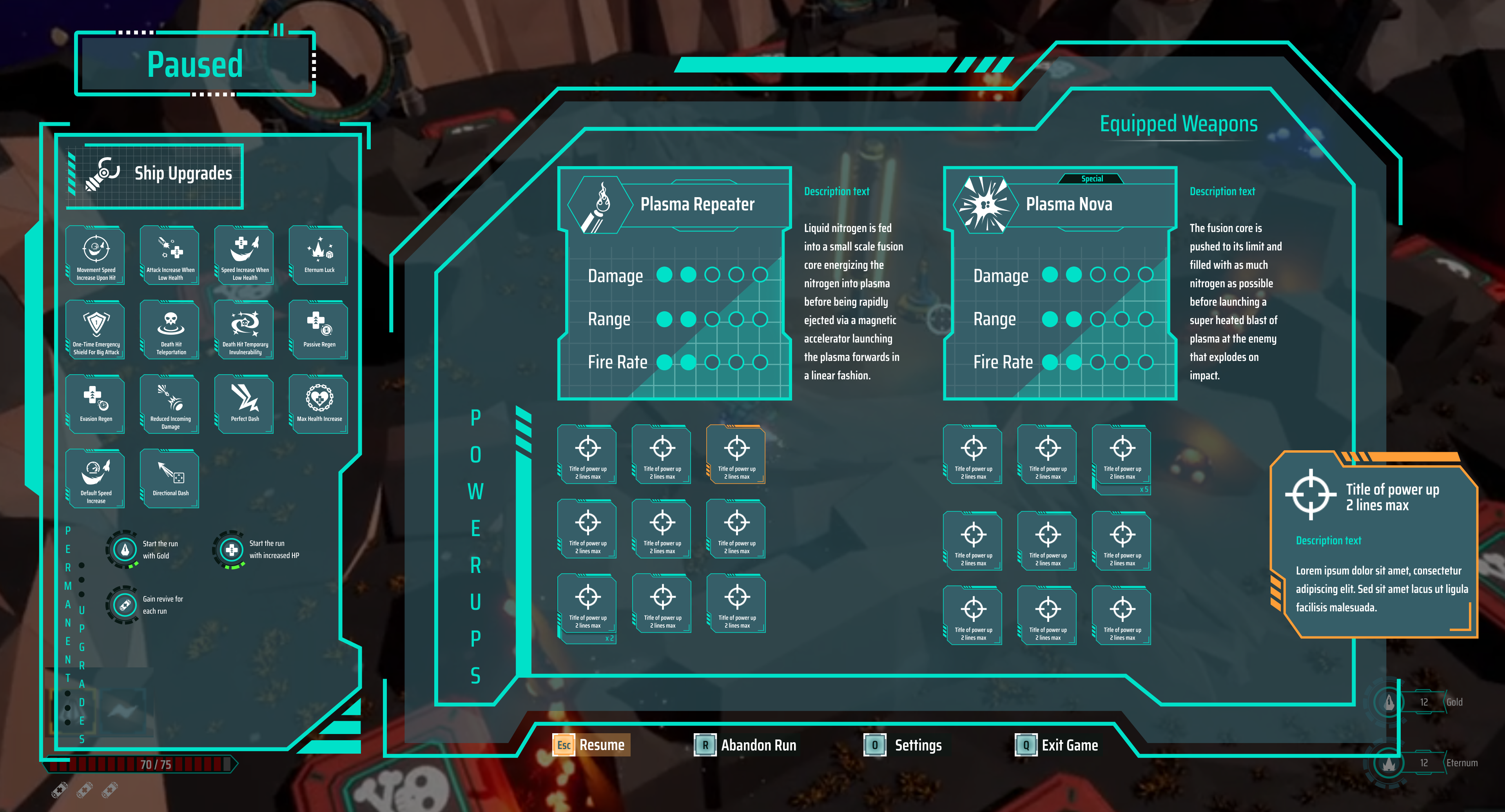 Consortium's Fall: Echoes of Xo'lara is a sci-fi roguelite twin-stick shooter about a lone hero’s fight against his people’s oppressor. It was a voluntary collaboration project with a cross-disciplinary team, where my focus was on designing user interfaces (UI) with a strong focus on creating sci-fic stylized intuitive UI elements.