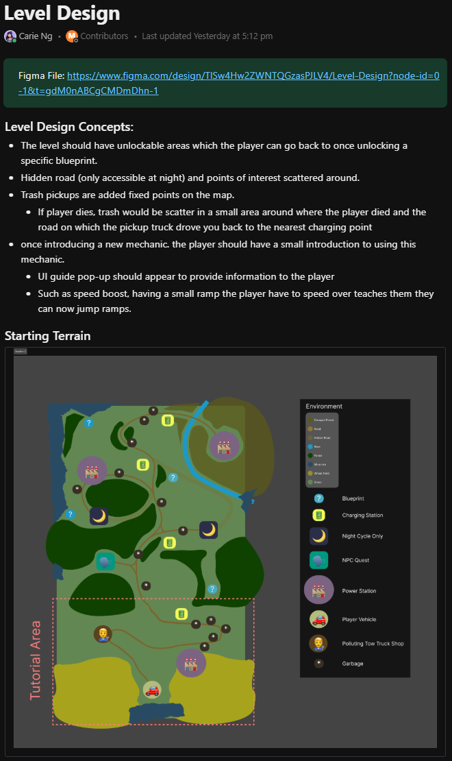 One of my main focus was maintaining documentation so that everything discussed would be recorded. This was a significant aspect of the project as we work on this project very sparsely and often have months in between our last discussion about decisions and direction of the game design.