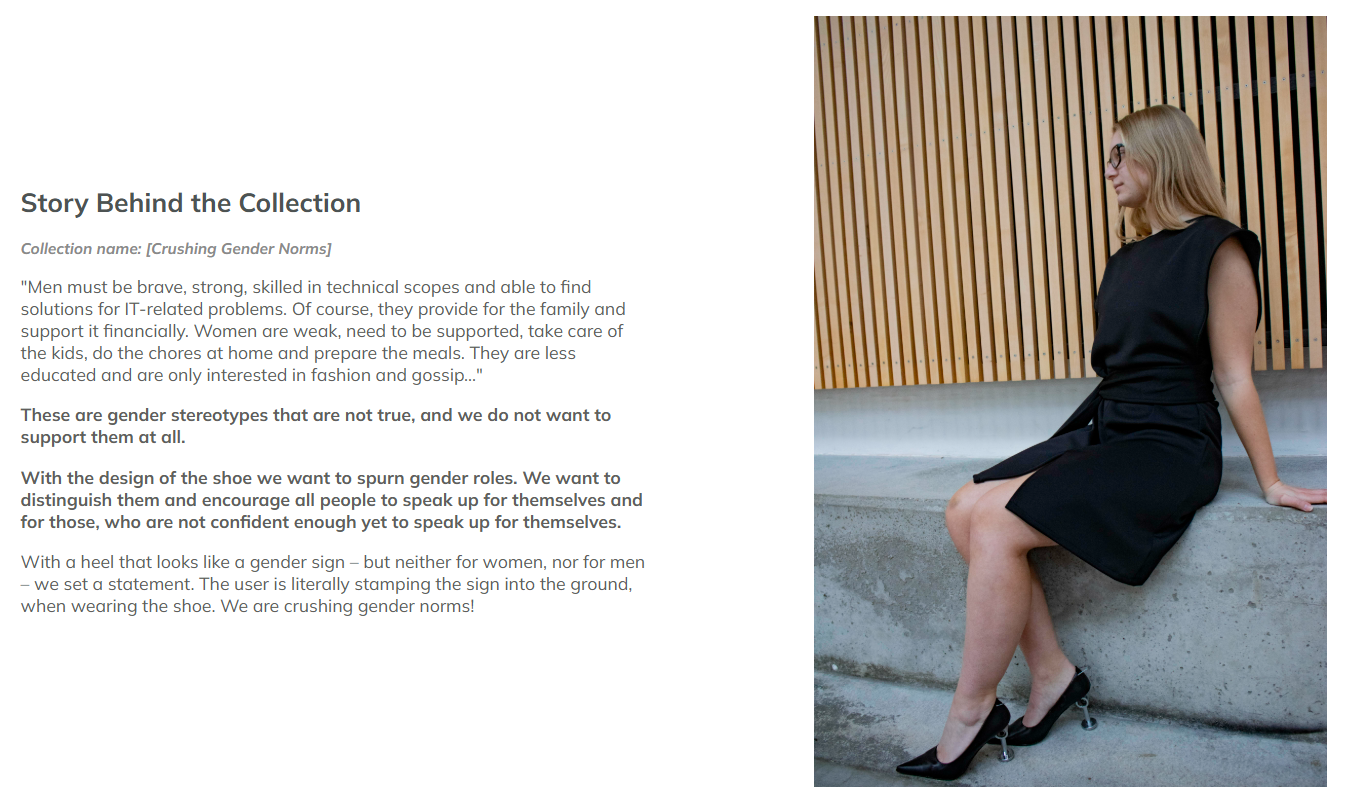 We decided to create a shoe collection since our initial inspiration from all the materials that we have gathered led to creating a shoe as the final product. Along with creating this shoe collection, we thought that it would be more interesting to create an outfit that could go with the collection. Therefore, we came up with this design for a simple dress so that when the user wears it, it won’t take away the attention from the shoe.